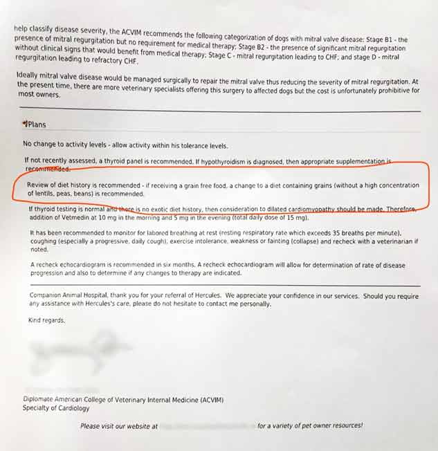 El que los veterinarios no reciban la capacitación nutricional adecuada para animales pequeños tampoco ayuda. Por ejemplo: estas son las recomendaciones de un cardiólogo certificado que sugiere que cambiar a una dieta a base de granos podría ayudar a un perro con problemas de corazón: